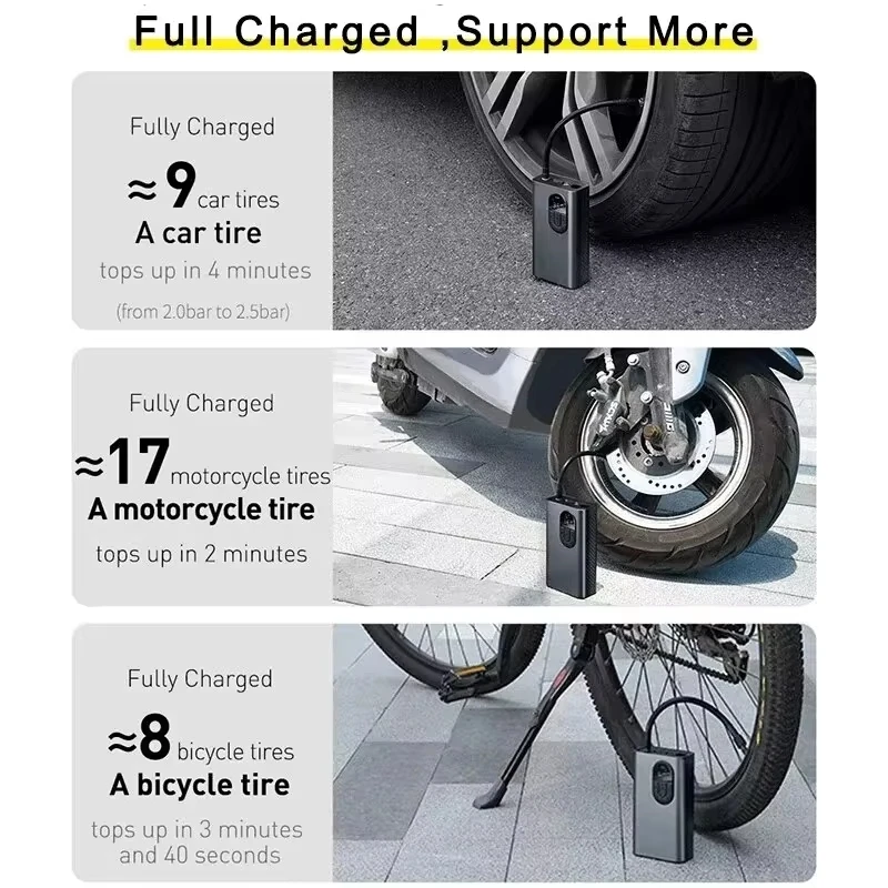 Don’t let low tire pressure hold you back! Equip yourself with the Portable Wireless Motorcycle Air Compressor and ride with confidence. Its compact design and high-performance capabilities make it an essential tool for every motorcycle enthusiast. Invest in your safety and peace of mind; get your portable air compressor today and ensure your bike is always ready for the next adventure!